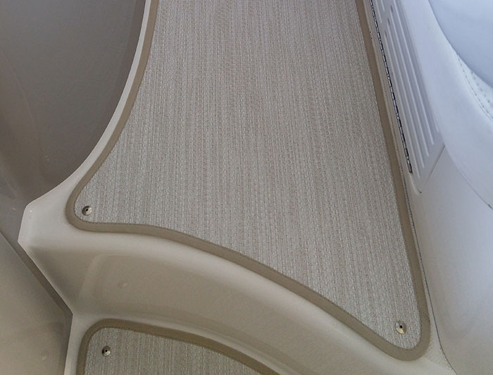 Lower helm area with INFINITY Luxury Woven Vinyl, protecting the boat with a non-stain surface