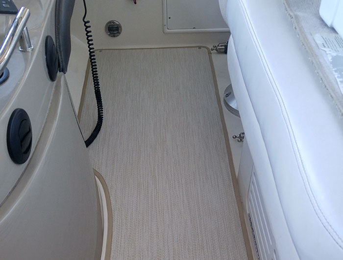 upper helm area with INFINITY Luxury Woven Vinyl, protecting the boat with a non-stain surface